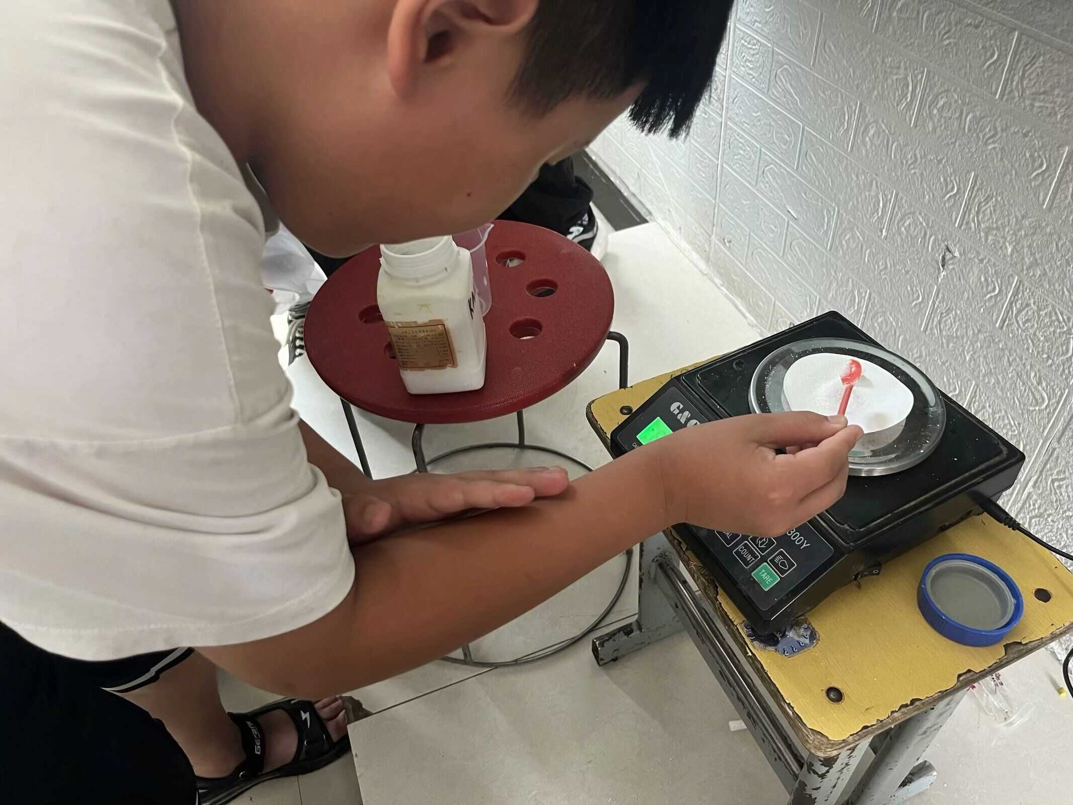學(xué)生親自實踐稱取藥品。(安徽師范大學(xué) 王雨欣 提供)