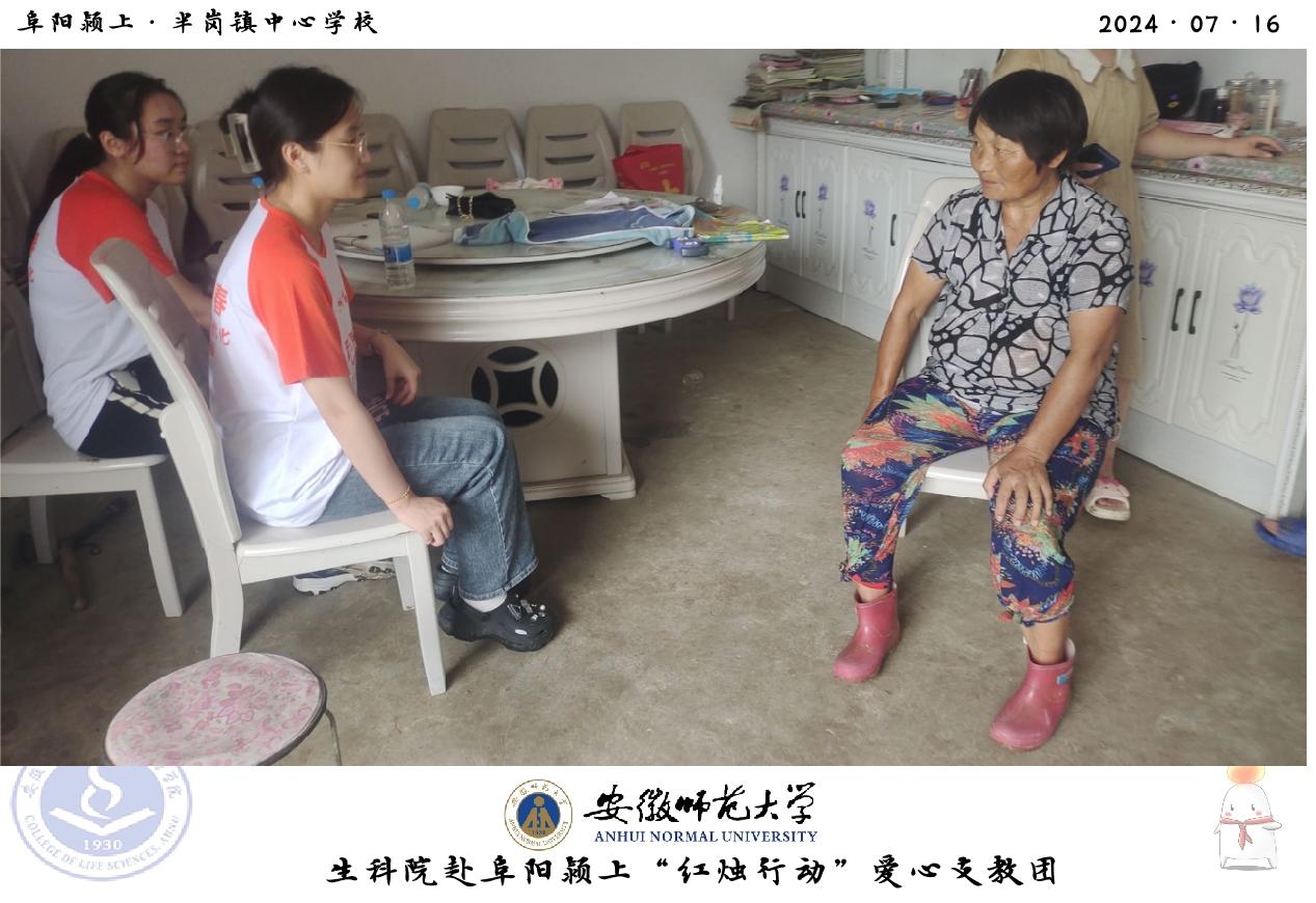 “教育是用一片樹葉搖動另一片樹葉,家訪是用一顆心靈去感動另一顆心靈”。家訪,是學(xué)校與家庭共同教育好孩子的一道不可或缺的橋梁。經(jīng)調(diào)研發(fā)現(xiàn),半崗鎮(zhèn)中心學(xué)校的學(xué)生中有70%學(xué)生是留守兒童,由爺爺奶奶撫養(yǎng)長大,缺乏父母陪伴。為了進(jìn)一步了解這些學(xué)生的生活情況以及其與家長的溝通情況,促進(jìn)家校密切合作,引導(dǎo)家長形成正確的教育觀,關(guān)愛學(xué)生的心理健康,生科院赴阜陽潁上“紅燭行動”愛心支教本科生社會實踐團(tuán)隊于7月16日開展了以“家訪暖人心,共育促成長”為主題的家訪活動。