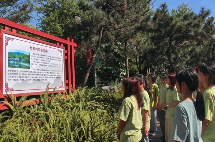 圖4為實(shí)踐隊(duì)成員在龍巖洞公園的參觀照如今,礦坑變綠,生態(tài)煥新,龍巖洞的改造建成不僅是對(duì)廢棄礦山的再利用,更是對(duì)生態(tài)文明建設(shè)的一次生動(dòng)實(shí)踐。龍巖洞向人們展示了生態(tài)文明建設(shè)的重要性和可行性,見(jiàn)證了人與自然和諧共生的新篇章。