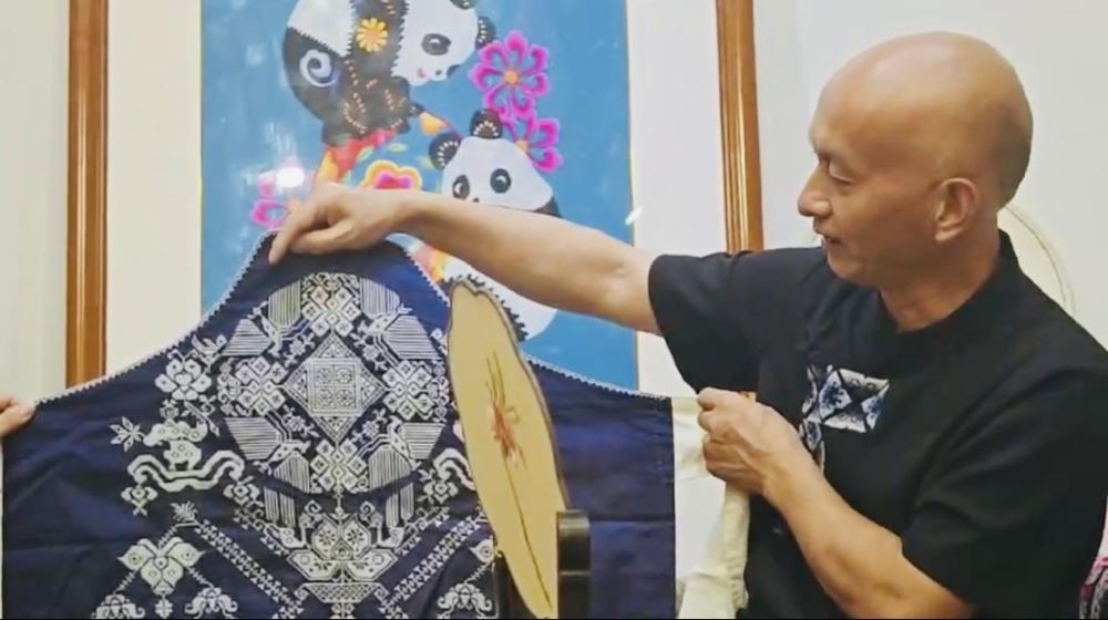 羌繡,作為羌族文化的璀璨瑰寶,以其精湛的工藝、獨特的圖案設(shè)計和豐富的文化內(nèi)涵,充分展現(xiàn)了羌族人民的智慧與創(chuàng)造力。何國良先生,作為羌繡非遺的杰出傳承者,多年來致力于羌繡的傳承與創(chuàng)新,技藝高超且文化底蘊深厚。座談會上,他滿懷激情地向?qū)嵺`團成員們深入剖析了羌繡的歷史淵源、獨特的藝術(shù)風格以及其中蘊含的羌族文化精髓。何先生強調(diào),羌繡不僅是線與針的交織藝術(shù),更是羌族文化的重要傳承載體,他的言辭中透露出對這份文化遺產(chǎn)的深深敬意。