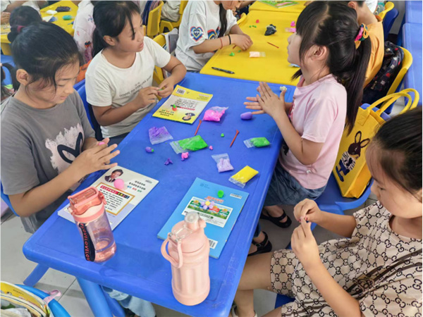 在上完兩節(jié)課后,志愿者李澤鈺給孩子們帶來了一節(jié)手工課,李老師給孩子們帶來一節(jié)太空泥制作課。李老師首先講了一些太空泥制作的一些注意事項(xiàng),然后讓孩子們發(fā)揮想象,捏出自己喜歡的東西。在這個(gè)過程中,李老師在一旁輔導(dǎo),孩子們各自發(fā)揮想象力,用自己的雙手將自己的所想展現(xiàn)出來。