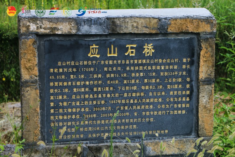 應山古橋始建于清乾隆三十一年,為三孔石拱橋。引橋兩頭石砌金剛墻和各置步階5級,是廣東省目前發(fā)現(xiàn)跨度最大的古石橋。兩側(cè)丘陵起伏,橋下河水清澈如鏡,倒映古橋,遠看像一條玉環(huán),故又稱玉環(huán)橋。橋建成后,商賈往來頻繁,絡(luò)繹不絕,遂成為宜樂古道的重要交通樞紐。2002年應山古橋被批準為“廣東省級文物保護單位”。古橋旁邊還有一座古廟,名叫水口廟,供著水口神,坐西北朝東南。