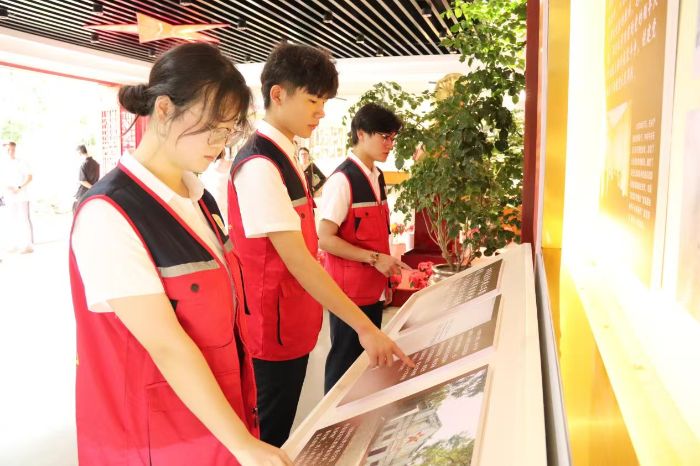 (圖為服務(wù)隊(duì)成員學(xué)習(xí)紅色歷史知識(shí))