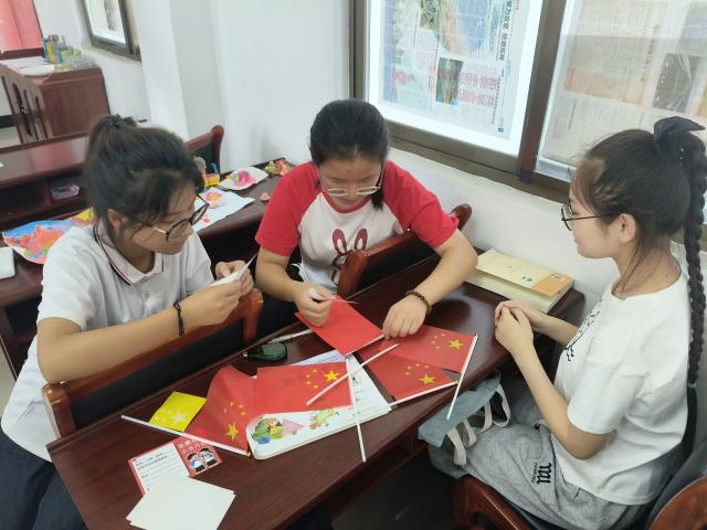 圖為實踐團成員在教授如何制作小紅旗。臺可娜 供圖
