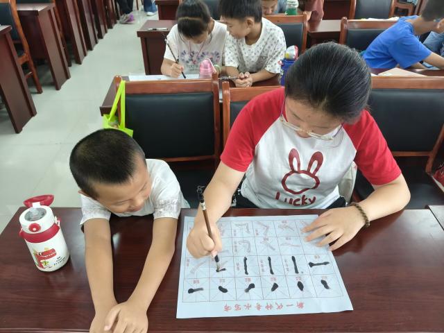 圖為孩子們認真書寫毛筆字。臺可娜 供圖