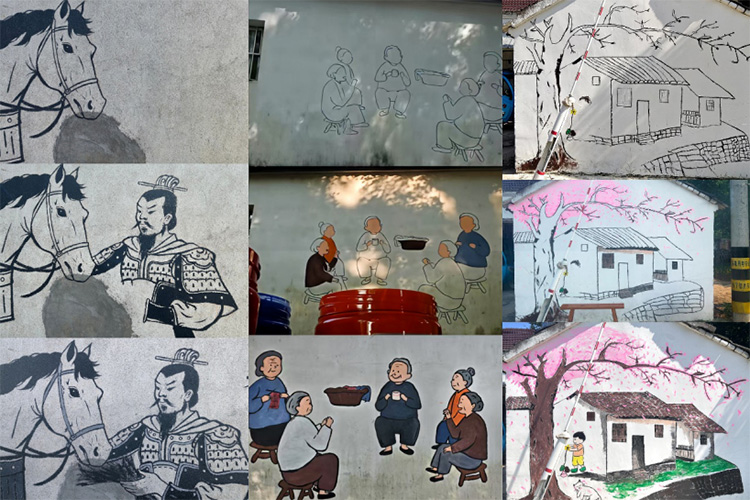 在年輕主任的帶領下,成員們找到了三面適合創(chuàng)作的墻面。烈日炎炎下,大家如尋寶般興奮,回到會議室后,圍繞墻繪主題展開熱烈討論,最終確定了創(chuàng)作方向。考慮到正午太陽毒辣,大家約定次日清晨五點再開始繪制。