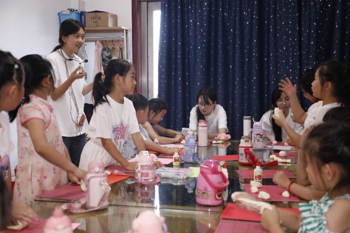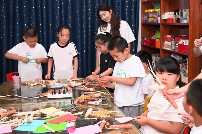 美育潤(rùn)苗:針線塑魂,童心映照文化傳承晨光漫灑錦春家園教室,針線穿梭、彩泥躍動(dòng),小學(xué)生們正全情投入美育課堂。在實(shí)踐隊(duì)員們的引導(dǎo)下,孩子們踏上“二十四節(jié)氣布藝”之旅:方寸布帛為紙,七彩絲線作畫(huà),將谷雨潤(rùn)物、驚蟄春雷幻化為布貼畫(huà)上的靈動(dòng)印記。