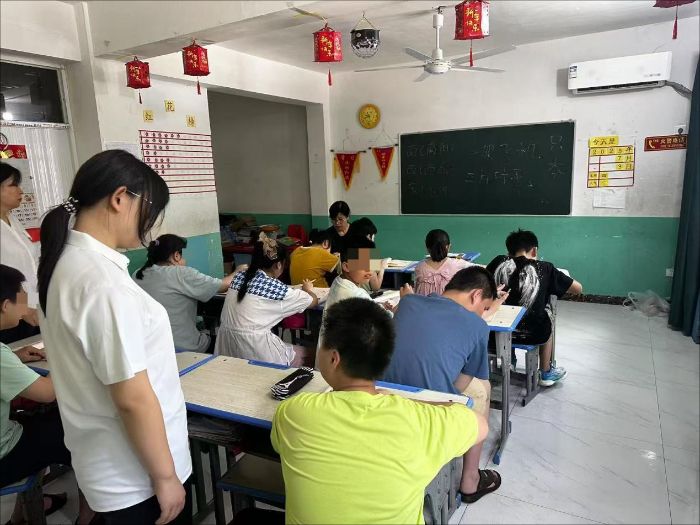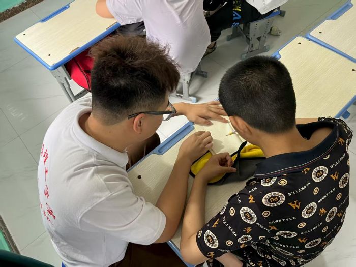 ??????? 圖為南工學子陪伴學生寫作業(yè)。王李昭 供圖