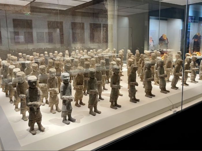 這些漢陶俑整齊排列,雖歷經(jīng)歲月侵蝕,色彩有所剝落,但仍能清晰感受到其栩栩如生的神態(tài)和生動(dòng)的造型。