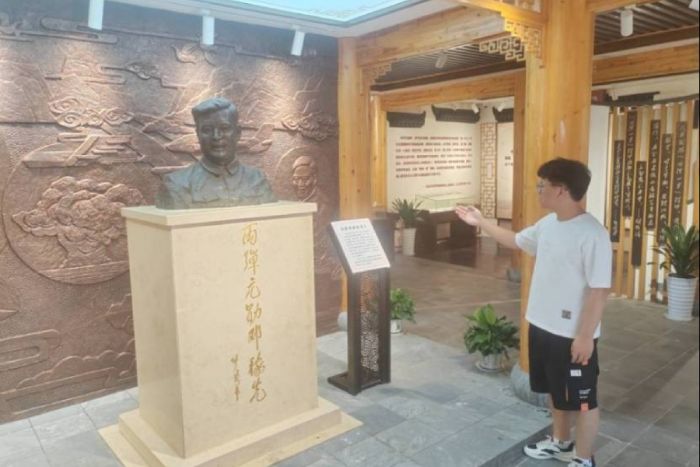 圖為志愿者參觀鄧稼先半身像。王海鵬 供圖