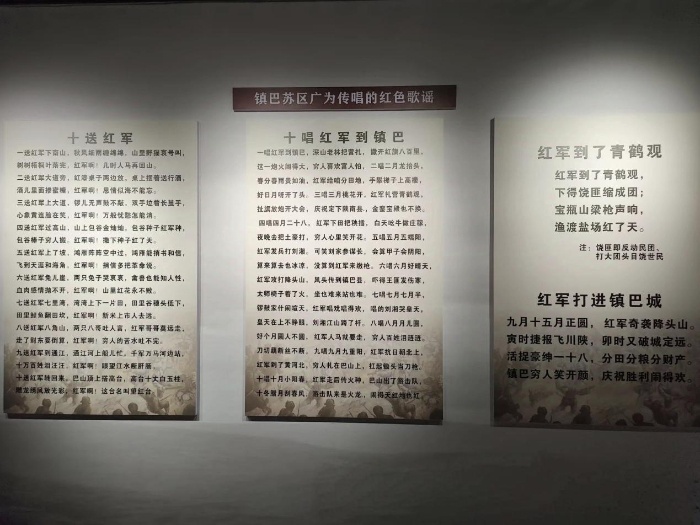 走進(jìn)縣博物館的 “紅色民歌” 展區(qū)內(nèi),《十送紅軍》的音頻在錄音設(shè)備循環(huán)播放著帶著濃郁鎮(zhèn)巴方言韻味的原版演唱。一踏入展區(qū),那悠揚又飽含深情的旋律便縈繞在耳邊,孩子們瞬間被吸引,紛紛駐足聆聽。講解員輕聲用普通話介紹:“這首《十送紅軍》是咱們鎮(zhèn)巴著名的紅色民歌,講述的是當(dāng)年鎮(zhèn)巴人民送別紅軍時的感人場景。”