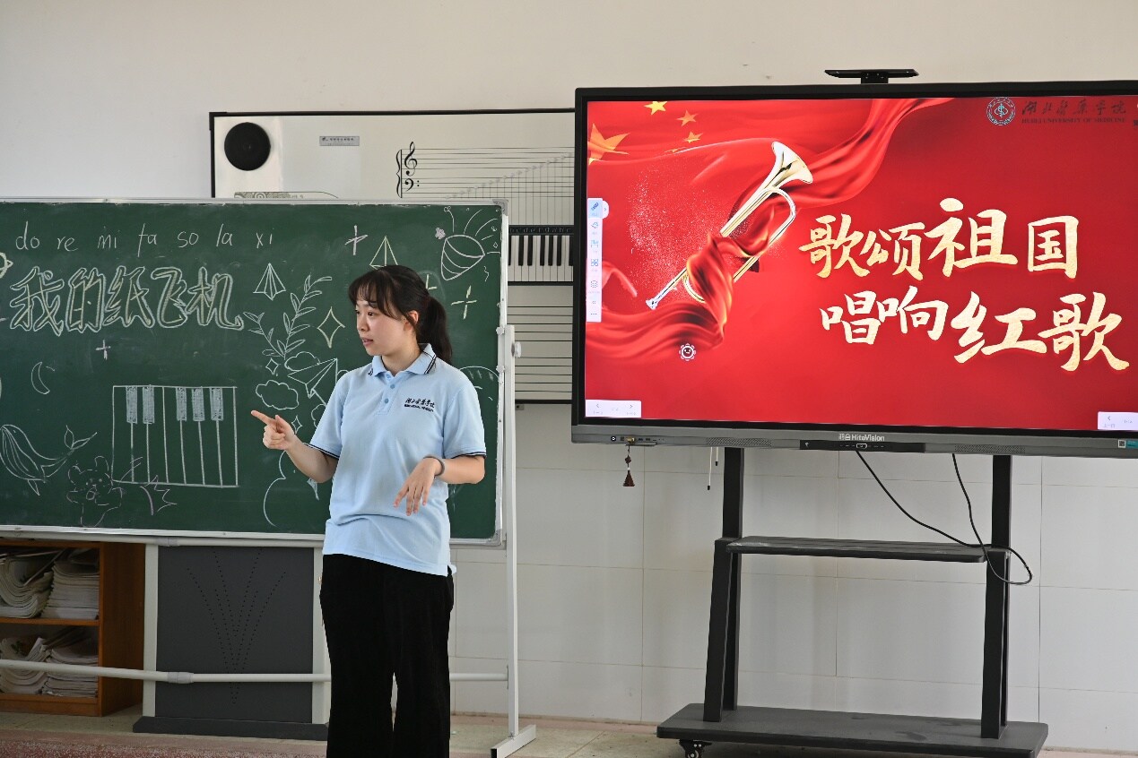 圖為老師正在帶領(lǐng)著小朋友們歌頌我和我的祖國 陳立志 農(nóng)姚 攝