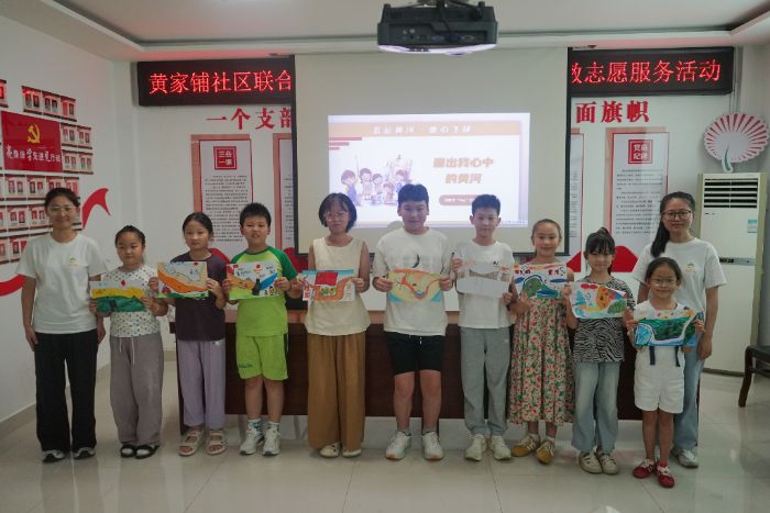 科普結(jié)束后,“繪出心中黃河”活動隨即展開。同學(xué)們化身小畫家,用色彩與線條表達(dá)對黃河的想象:有的畫下黃河在陽光下波光粼粼的模樣,有的畫出岸邊生機(jī)勃勃的草木,還有的將黃河與城市景象結(jié)合,充滿童趣與創(chuàng)意。畫作完成后,大家舉著作品并肩合影,畫面里,稚嫩的畫作與燦爛的笑容交相輝映,成為對黃河之愛最直觀的表達(dá)。