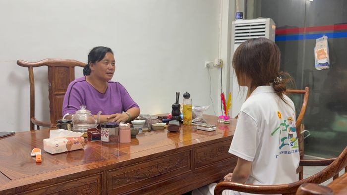 實(shí)踐隊(duì)隊(duì)員們與瑤族嬌客棧老板圍坐長談,就紫蘇醬包裝升級需求展開深度探討。依托專業(yè)知識,隊(duì)員們從品牌視覺符號重構(gòu)、壯瑤文化元素提煉等多維度切入,現(xiàn)場集思廣益,精心構(gòu)思包裝設(shè)計(jì)方案。力求讓這一傳統(tǒng)美食披上兼具民族風(fēng)情與現(xiàn)代審美的“新衣”,提升產(chǎn)品市場競爭力,推動民族特色產(chǎn)業(yè)高質(zhì)量發(fā)展。