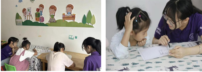 一對(duì)一輔導(dǎo)環(huán)節(jié),成員們搬著小板凳坐在孩子身邊,從“這道題我們換個(gè)思路”到“你畫的這幅畫真好看”,筆尖劃過作業(yè)本的沙沙聲里,藏著慢慢靠近的信任。有孩子把自己的秘密寫在紙條上遞給老師,也有老師在輔導(dǎo)本上畫了一個(gè)真棒的表情包。這些無聲的互動(dòng),儼然消解掉一天的疲累。