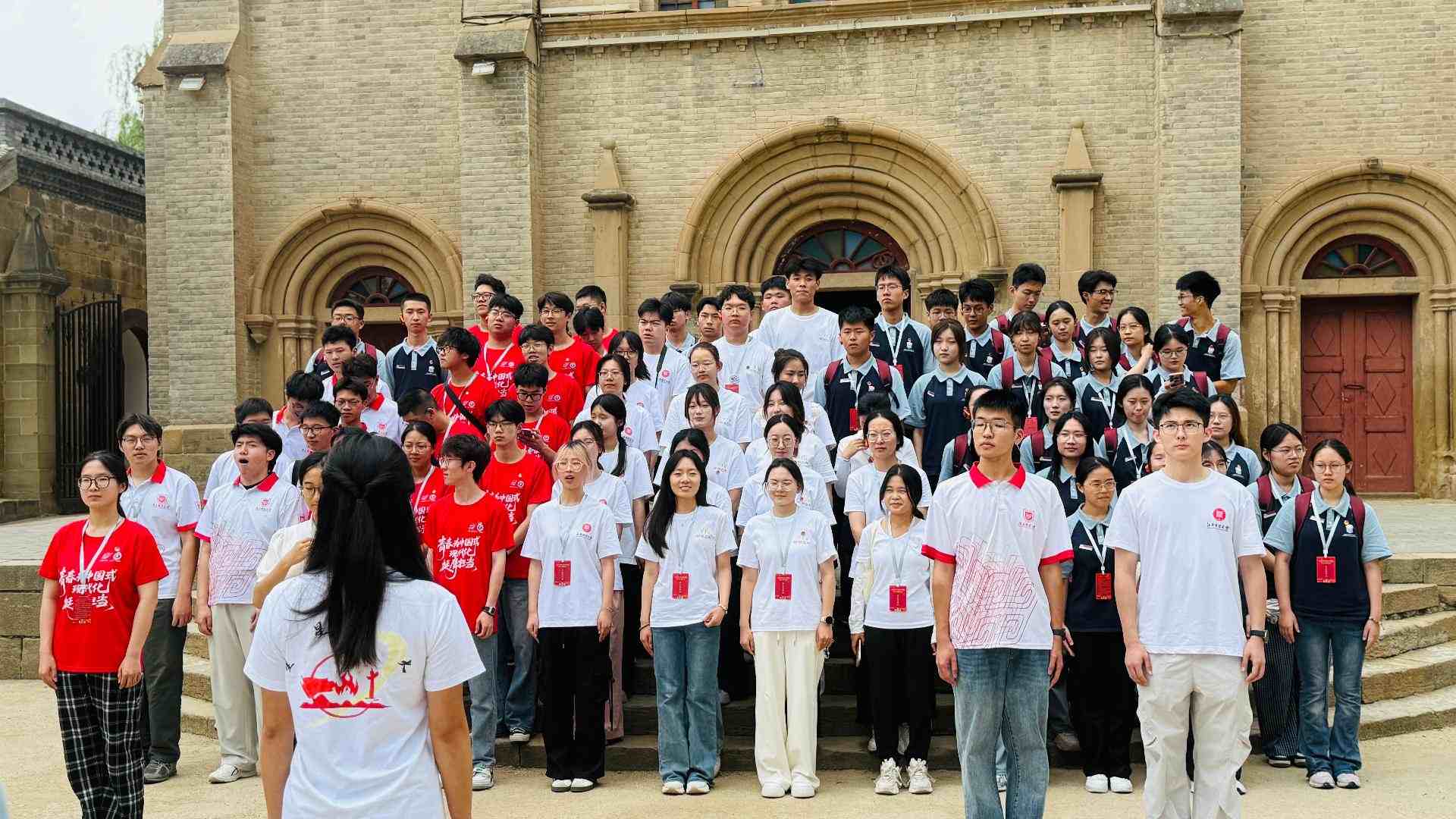 實踐隊員在魯迅藝術(shù)文學院舊址合唱《黃河大合唱》