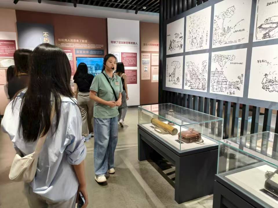 抵達(dá)紀(jì)念館后,實(shí)踐隊(duì)員首先了解了舊址的歷史背景。據(jù)工作人員介紹,1938年春,南方八省的紅軍游擊隊(duì)在巖寺集結(jié),完成整編為新四軍,開啟東進(jìn)抗日征程。作為全國重點(diǎn)文物保護(hù)單位,這里的軍部舊址金家大屋,曾是葉挺、項(xiàng)英、周恩來等老一輩革命家辦公、議事的場所,見證了新四軍從組建到發(fā)展的關(guān)鍵歷程。