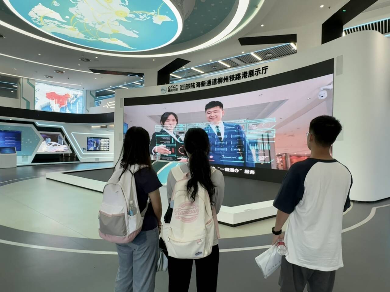 圖為團隊成員參觀西部陸海新通道柳州鐵路港展示廳