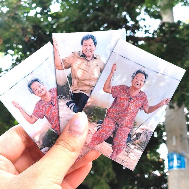 活動(dòng)當(dāng)天,隊(duì)員與村委會(huì)進(jìn)行溝通,在村委會(huì)的引導(dǎo)下走進(jìn)了這個(gè)靜謐且美好的村子,很容易的看到老人們?cè)跇湎鲁藳隽奶?,我們向老人們說(shuō)明來(lái)意后,村民們很高興,有秩序地等待我們?yōu)槠渑恼?。團(tuán)隊(duì)成員耐心地為老人們整理衣物、梳理頭發(fā),引導(dǎo)他們擺出自然的姿勢(shì)。我們?yōu)槔夏棠檀魃习l(fā)卡,為其拍上最美的照片,仍記得老人那句“拍完照后發(fā)卡可以送我嗎?”所帶的美好與甜蜜。拍攝完成后,團(tuán)隊(duì)成員立即通過(guò)便攜式打印機(jī)將照片現(xiàn)場(chǎng)打印出來(lái),送到老人手中。拿到嶄新照片的老人們愛(ài)不釋手,不停地夸贊:“這照片拍得真好,這個(gè)好看!”