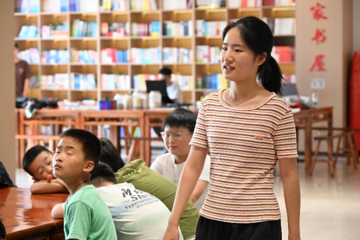 圖為支教團(tuán)成員葛欣悅進(jìn)行課堂介紹