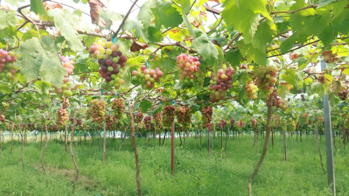 在徐凱凱的葡萄園里,成員們見到了浪漫紅顏、陽光十三等葡萄新品種。
