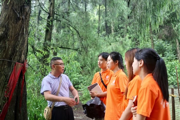 圖為龍忠會長帶領(lǐng)服務(wù)隊(duì)考察白溪關(guān)歷史遺跡