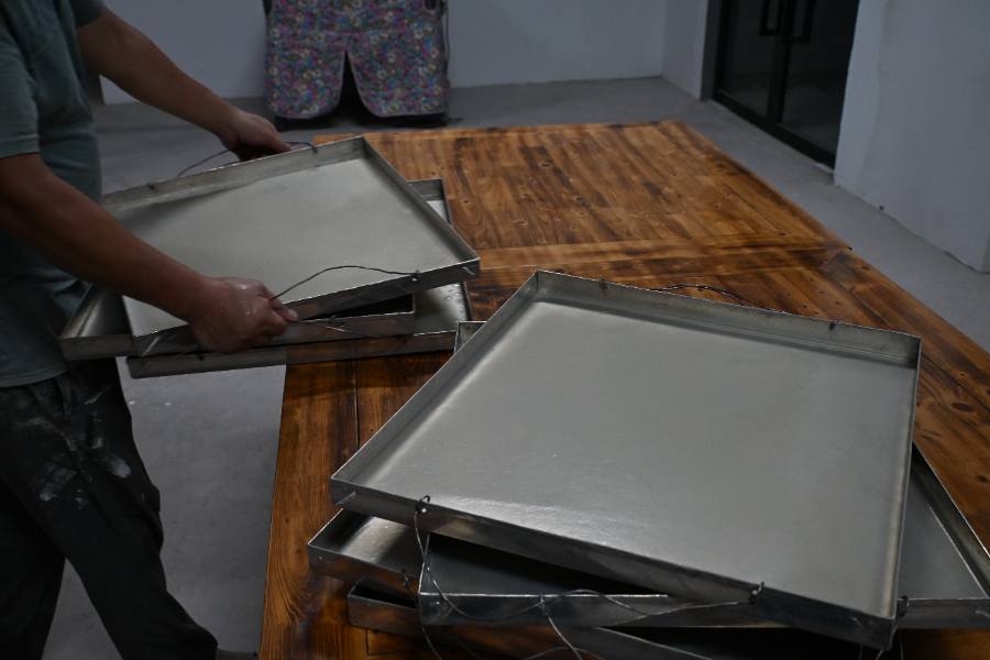 當天實踐團到達時,張姐正忙著給苕粉固形。鐵鍋上架著模具,她一手穩(wěn)模、一手舀漿,手腕輕晃間,紅薯漿便均勻鋪滿模具。“張姐,這晃動的力度有講究嗎?”有隊員忍不住提問。“得勻著勁兒,不然粉皮厚薄不一,煮的時候就容易碎。”張姐笑著答,手上的活卻沒停,漿體剛凝固,便迅速放入沸水定型,轉(zhuǎn)身又開始下一盤制作。待粉皮成形,一家人會細致地掛晾、風干、切塊、裝箱,整套流程行云流水。