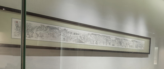 宣城是著名的 “中國文房四寶之城”,在 “文房瑰寶” 專題展廳,志愿者們通過紙壽千年、落筆驚風(fēng)、金聲玉德、點(diǎn)墨如漆和文房清玩等部分,詳細(xì)了解了宣紙、宣筆、宣硯、徽墨的歷史及制作技藝。展廳入口處的蒙恬制筆、曹大三造紙、胡開文制墨和太白賞硯的群體場景雕塑栩栩如生,生動還原了文房四寶的歷史典故和傳統(tǒng)制作技藝。在 “紙壽千年” 宣紙展區(qū),一幅由當(dāng)?shù)貢嫾液献鞯男堉谱鞴に囬L卷吸引了大家的目光,這幅長卷以 “水火相濟(jì)、日月精華” 為題,通過傳統(tǒng)線描技法展示了宣紙制作工藝流程,人物描繪精致入微、生產(chǎn)工序造型生動,一旁的視頻區(qū)則更加直觀地再現(xiàn)了宣紙制作的獨(dú)門絕技,讓大家對宣城文房四寶的獨(dú)特魅力有了更深刻的認(rèn)識。