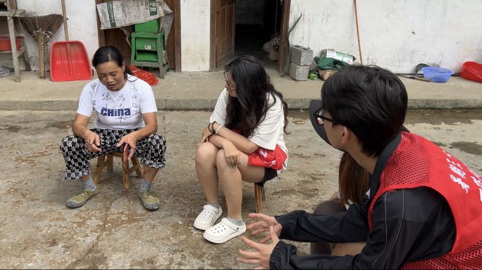 田間勞動(dòng),體驗(yàn)茶農(nóng)艱辛 7月21日清晨,隊(duì)員們跟隨茶農(nóng)黎師傅走進(jìn)茶園,學(xué)習(xí)除草、松土、施肥等技術(shù)。“淺耕保墑要掌握2-3厘米深度,太深傷根,太淺沒效果。”隊(duì)員們學(xué)著他的樣子,彎腰在茶樹間穿梭。汗水很快浸透了后背,指尖沾滿泥土的芬芳。不知何時(shí),幾位苗族阿姐也加入了勞作的隊(duì)伍。休息時(shí),她們唱起悠揚(yáng)的苗歌,歌聲像山澗清泉般流淌。雖然聽不懂歌詞,但隊(duì)員們不約而同地跟著節(jié)奏輕輕搖擺。陽光下,不同民族的笑臉一樣燦爛,歌聲在山谷間回蕩,驚起一群飛鳥。這一刻,語言不再是隔閡,茶香與歌聲成了最動(dòng)人的紐帶。