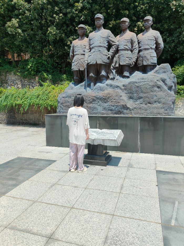 青山埋忠骨,碑銘鑄豐碑皖南事變烈士陵園坐落于涇縣城郊的水西山麓,是新中國成立后為紀念皖南事變中英勇犧牲的新四軍將士而建。實踐團成員莊嚴肅立于陵園入口處的巨型紀念碑前默哀三分鐘,表達對烈士們的無限敬仰和深切哀思,立志要將先烈們的革命精神內(nèi)化于心、外化于行,努力學習科學文化知識,積極投身社會實踐,為實現(xiàn)中華民族偉大復興的中國夢貢獻青春力量。高聳的碑體鐫刻著“皖南事變死難烈士永垂不朽”十二個金色大字,在烈日下熠熠生輝。“1941年1月,震驚中外的皖南事變爆發(fā),近7000名新四軍將士用鮮血染紅了這片土地。”