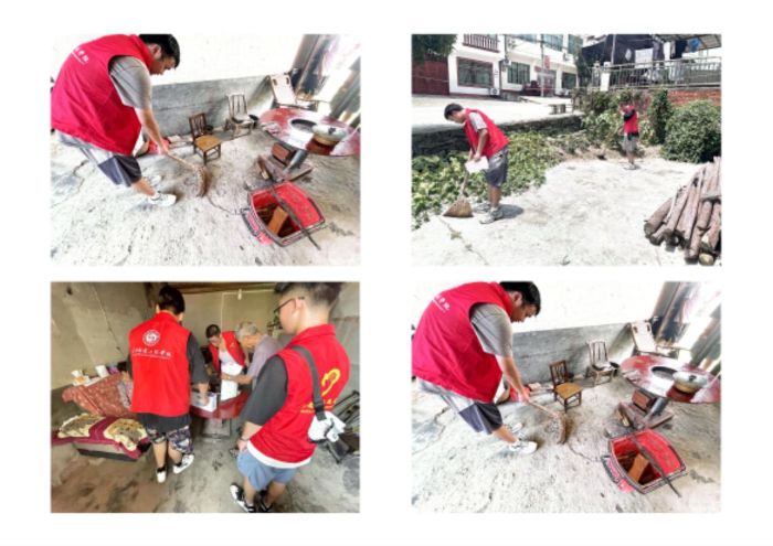 7月20日,團隊帶著米、面、牛奶走訪村內(nèi)貧困戶。在獨居老人張奶奶家,隊員們一邊聽她講年輕時種牡丹的故事,一邊幫著擦拭門窗、整理雜物。“你們來了,屋里亮堂多了。”張奶奶的話,讓隊員們懂得,鄉(xiāng)村實踐既要“做實事”,更要“暖人心”。