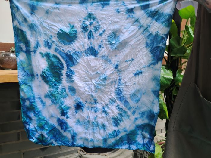 活動現(xiàn)場,團隊成員在專業(yè)指導下,沉浸式體驗夏布手工扎染。從布料折疊、捆扎,到浸染、晾曬,每一步都傾注著對非遺技藝的敬畏。經過獨特工藝,原本素凈的布料化作藍白相間、圖案別致的藝術作品,展現(xiàn)出扎染 “暈色豐富、變化自然”的獨特美感。夏布作為榮昌“四珍”之一,承載著當地千年紡織文化。