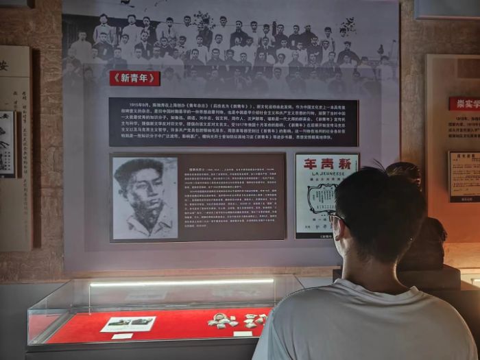 接著志愿者們進入烈士紀念館內(nèi)部進行參觀,通過人物畫像介紹以及文物展示,實踐團隊了解到檀炳光的英雄事跡,男,1909年出生于貴池縣棠溪鄉(xiāng)留田村。1929年加入中國共產(chǎn)黨。1932年11月,擔任中共貴池縣委書記,1935年1月,參與發(fā)動了留田年關(guān)暴動,5月在指揮部隊突圍中光榮犧牲。而他深受《新青年》等進步書籍的影響,這讓志愿者對于新文化運動有了全新的認知與感悟,新文化運動是一次具有深遠影響的思想解放運動,它為我們留下了寶貴的精神財富。