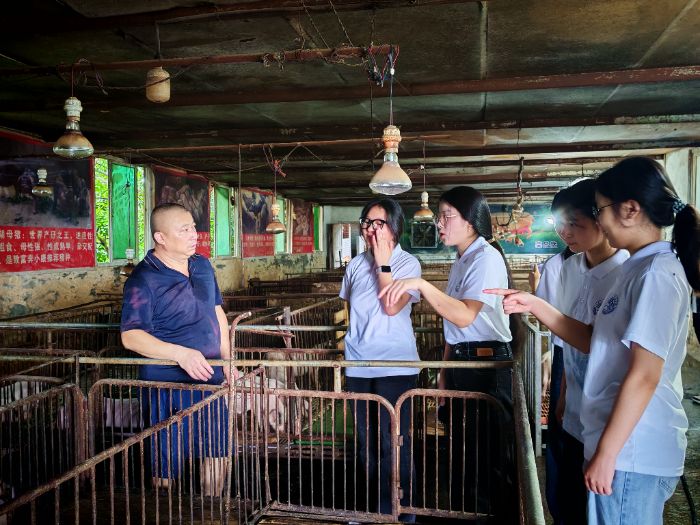 實踐團還深入了解了養(yǎng)殖場的運營細(xì)節(jié):養(yǎng)殖規(guī)模方面,高峰時期母豬存欄量突破5000頭;銷售渠道上,以線下交易為主,客戶多通過電話預(yù)訂后上門選購,周邊地區(qū)可提供配送服務(wù),線上銷售因物流制約尚未大規(guī)模鋪開;政策支持上,當(dāng)?shù)貙Ξa(chǎn)崽5頭以上的榮昌母豬,每頭給予500元補貼,有效激發(fā)了養(yǎng)殖熱情。 此外,養(yǎng)殖場通過合作社模式聯(lián)動周邊農(nóng)戶,帶動大家通過科學(xué)養(yǎng)殖增收。負(fù)責(zé)人還講述了自己自2006年踏入養(yǎng)豬行業(yè)的奮斗經(jīng)歷,分享了多年積累的養(yǎng)殖心得,讓團隊對基層養(yǎng)殖者的堅守與付出有了真切體會。
