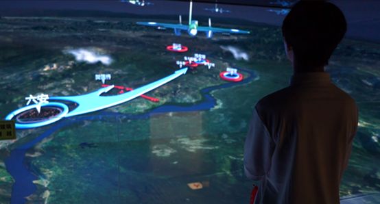 圖為志愿者在參觀蘇家埠戰(zhàn)役3D情景模擬。