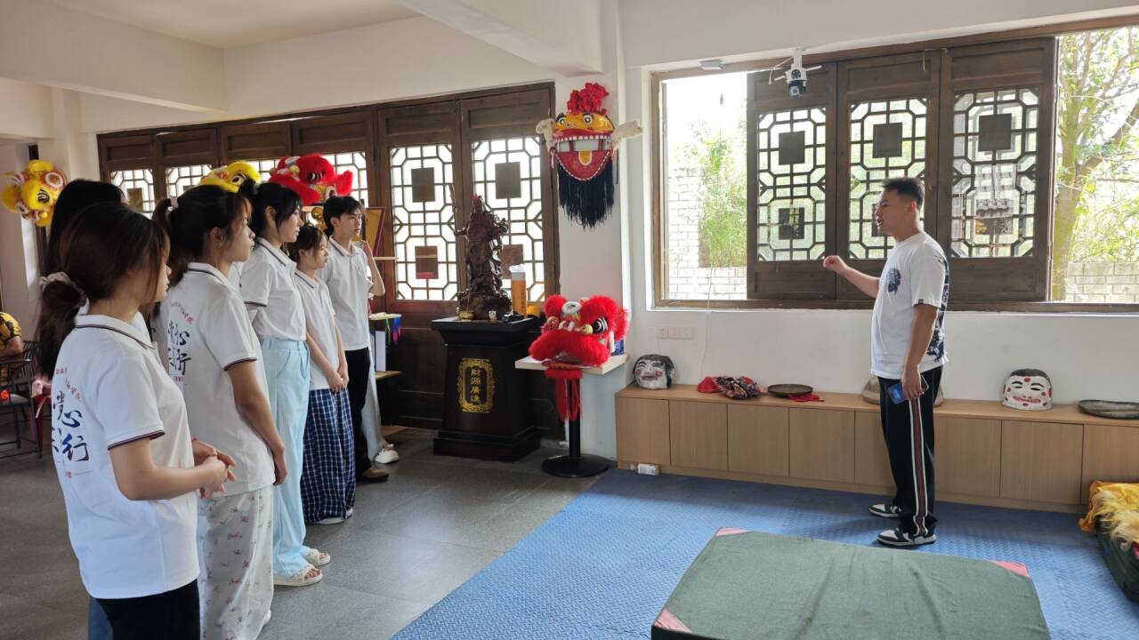 在隨后的學(xué)習(xí)環(huán)節(jié)中,傳承人耐心向?qū)嵺`團(tuán)成員講解了舞獅的基本動(dòng)作要領(lǐng)和文化內(nèi)涵。從獅頭的握持技巧到步伐的協(xié)調(diào)配合,從眼神的傳神表達(dá)到手部的細(xì)膩動(dòng)作,傳承人一一示范、細(xì)致指導(dǎo)。成員們熱情高漲,分組進(jìn)行練習(xí),盡管初期動(dòng)作略顯生澀,但在反復(fù)揣摩與實(shí)踐中,逐漸找到了舞獅的韻律感,不少人還能完整完成“抱拳”“擺尾”等基礎(chǔ)動(dòng)作,切身感受到了非遺文化的獨(dú)特魅力。