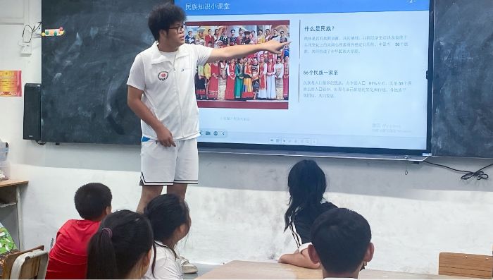 圖為老師介紹民族知識。“籽籽同行”突擊隊 供圖