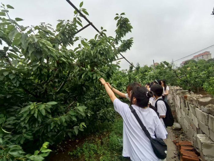 在石河村,'沙王'櫻桃不僅是一個品種,更是一套完整的產(chǎn)業(yè)升級案例。通過駐村工作隊的對接,這里完成了從傳統(tǒng)種植到三產(chǎn)融合的關(guān)鍵躍遷:一產(chǎn)優(yōu)化,二產(chǎn)延伸,三產(chǎn)突破,小櫻桃的供給側(cè)改革,正是微觀中國最生動的教案"。實踐團走進櫻桃種植園,與種植戶交流,深入了解了種植櫻桃的品種、種植過程以及石河村旅游業(yè)的發(fā)展對櫻桃采摘產(chǎn)業(yè)的推動作用,利用所學(xué)知識,與農(nóng)戶針對種植過程中所需水肥以及最適宜種植品種展開討論,得到了農(nóng)戶的肯定。