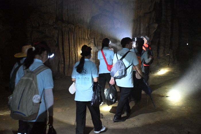 環(huán)線的核心亮點之一——“天心眼”溶洞,向?qū)嵺`團揭開了喀斯特地貌的神秘面紗。鄭隊長耐心講解溶洞的地質(zhì)構(gòu)造與形成過程,隊員們認真記錄下這些珍貴信息,深入地了解自然奇觀背后的科學(xué)奧秘。
