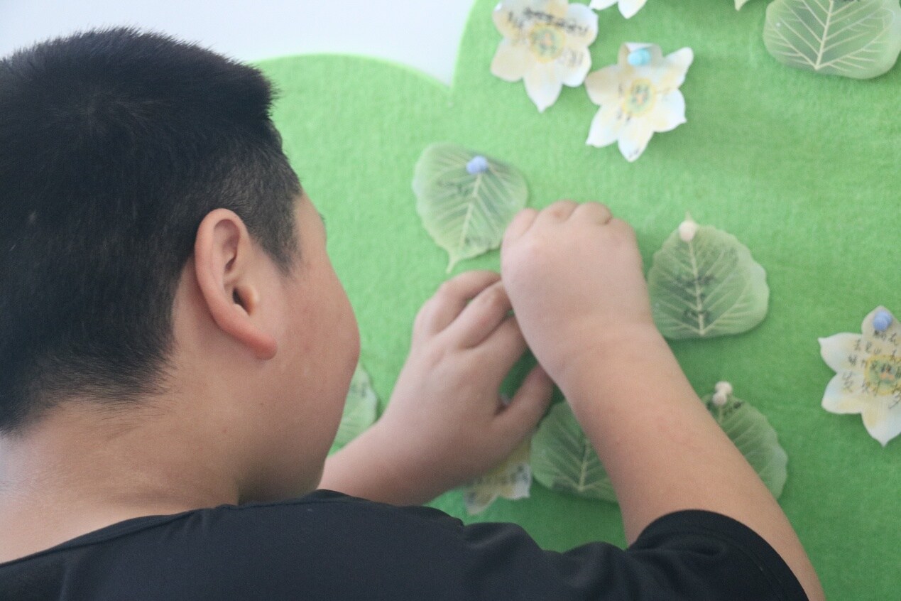 圖為孩子們?cè)谛脑笜渖腺N上自己寫下的美滿心愿和祝福語 陳立志 農(nóng)姚 攝
