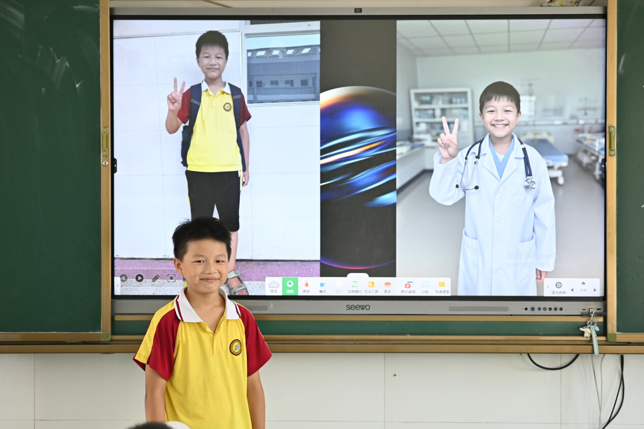 信仰培育潤(rùn)物無聲:《萬疆》舞蹈?jìng)鬟f家國情;話劇課讓紅色故事變童言童語;美工課的護(hù)水承諾卡熠熠生輝;《我和我的祖國》、《蟲兒飛》《萱草花》在音符中滋養(yǎng)心靈親情。AI課的照片幫孩子們“實(shí)現(xiàn)”他們夢(mèng)想的職業(yè),時(shí)光膠囊里封存著“造火箭”“當(dāng)醫(yī)生”的愿景。“我的夢(mèng)想是當(dāng)醫(yī)生,跟哥哥姐姐一樣救死扶傷!”心愿樹上,一張筆跡稚嫩卻格外堅(jiān)定的卡片,深深觸動(dòng)了身為湖醫(yī)藥學(xué)子的隊(duì)員們。
