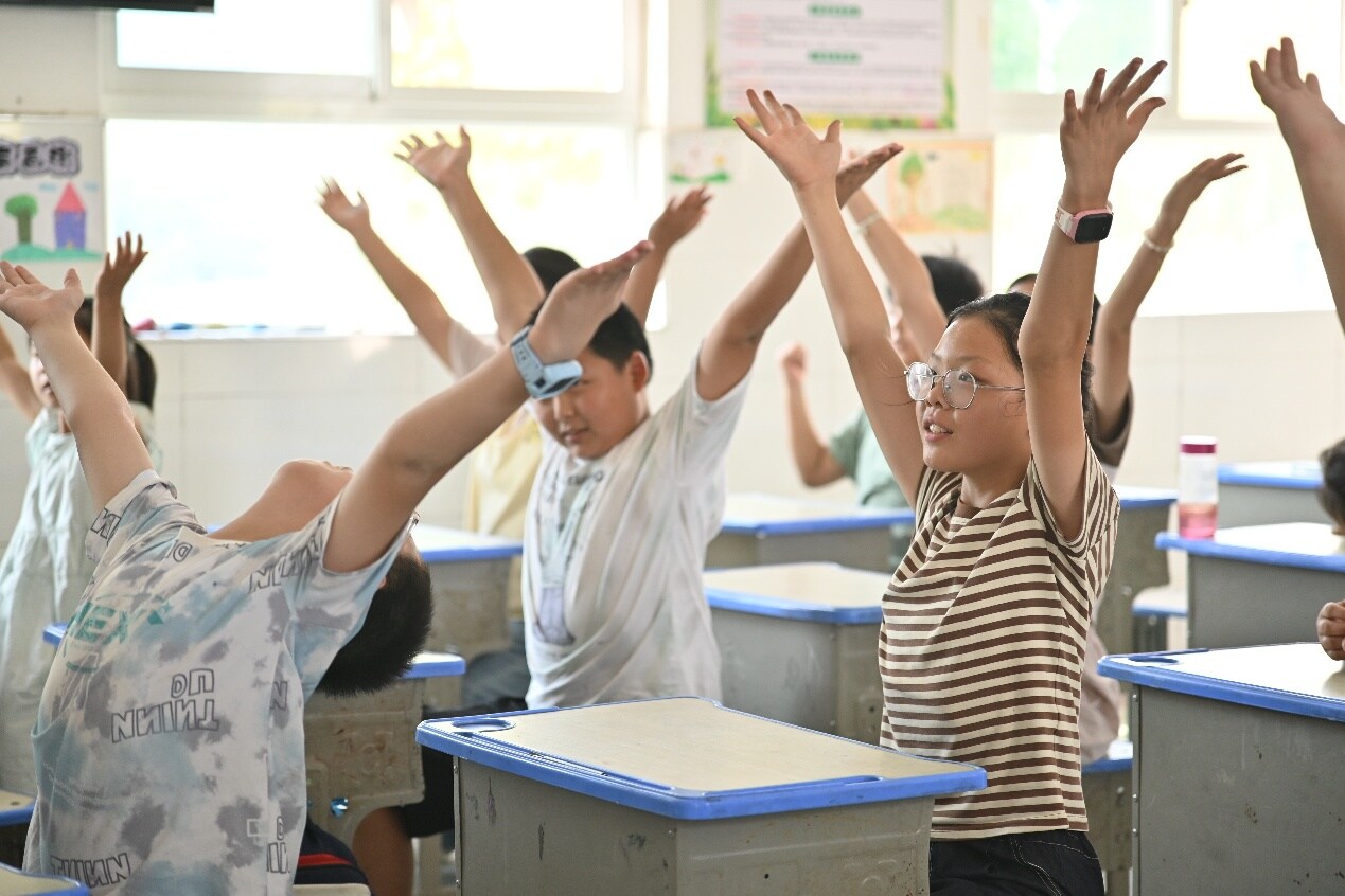 起初,教室里“乒乒乓乓”一片熱鬧的“雜音”,孩子們手忙腳亂,杯子也調(diào)皮地“逃跑”。一遍、兩遍、三遍……專注的眼神緊盯著杯子和老師的手勢。雜亂的聲音逐漸匯聚成整齊劃一的節(jié)拍,動作流暢起來,杯子仿佛被施了魔法,在桌面上、手掌間跳躍、旋轉(zhuǎn)、碰撞,發(fā)出清脆悅耳的聲響。當整齊的節(jié)奏完美卡上音樂的鼓點,整個教室沉浸在韻律的狂歡中。