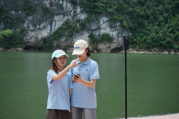 圖為實(shí)踐隊(duì)員利用全景相機(jī)采集影像資料