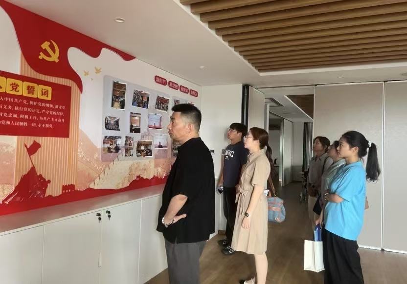 實踐團隊首站走進企業(yè)內(nèi)部,在聆聽陳昕對企業(yè)概況的簡介后,依次參觀企業(yè)榮譽墻、員工辦公區(qū)、休息活動區(qū)與黨建中心等內(nèi)部區(qū)域,在陳昕的介紹下了解企業(yè)在安全交易、環(huán)保實踐等方面的舉措,直觀理解企業(yè)社會責任落地路徑。榮譽墻羅列的各類獎項,見證了企業(yè)履行責任獲得的認可,其中企業(yè)的駱德龍董事長曾獲得全國勞動模范榮譽稱號。員工辦公區(qū)里,工作節(jié)奏忙碌有序,傳遞出企業(yè)日常運營對責任理念的貫徹。休息活動區(qū)布置溫馨,體育活動等設(shè)施齊全,體現(xiàn)企業(yè)對員工關(guān)懷這一社會責任維度。黨建中心則揭示紅色引領(lǐng)下,企業(yè)通過評選先進黨員,設(shè)立企業(yè)婦聯(lián)等,將社會責任融入發(fā)展基因的深層邏輯,讓實踐團隊對企業(yè)責任生態(tài)有了具象認知。