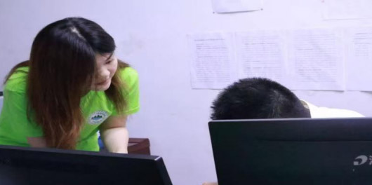 (圖為“青禾聲影”團(tuán)員采訪周信源同志。張貴瑩供圖)