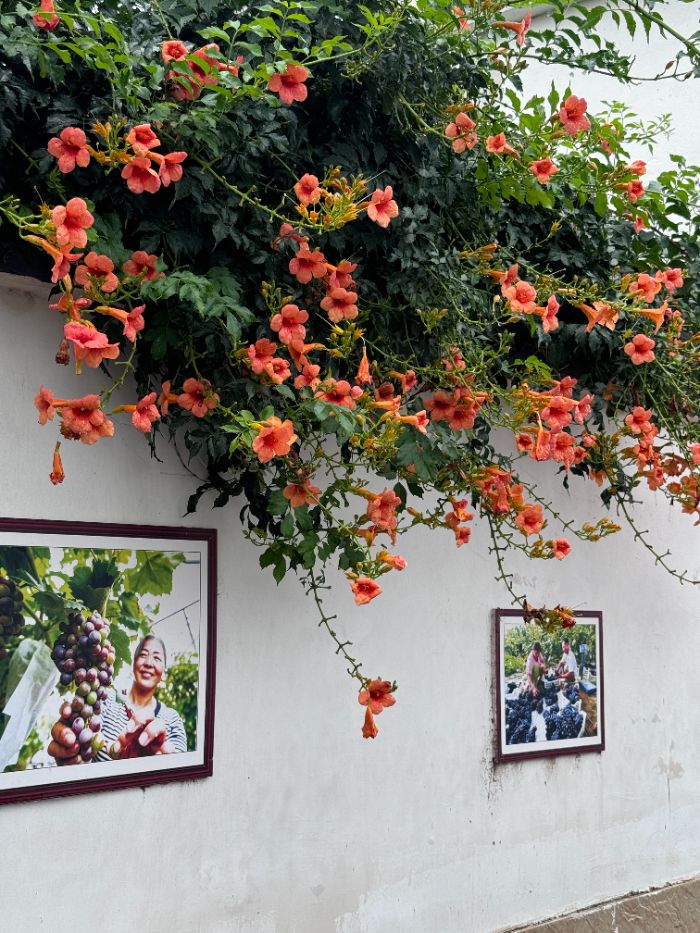 三輪車拐進段家莊主巷,兩面斑駁的白墻掛滿A3防水彩照:紅衫大伯高舉沉甸甸的巨峰、戴草帽的嬸子把葡萄舉過頭頂、孩子們蹲在藤下偷吃,嘴角沾著糖霜。蹬三輪的奶奶笑說:“收成好不好,先看笑不笑。”隊員舉起相機,把墻上的笑臉與墻下的自己疊進同一景深——傳統(tǒng)與未來在一張薄薄的相紙上無聲握手。