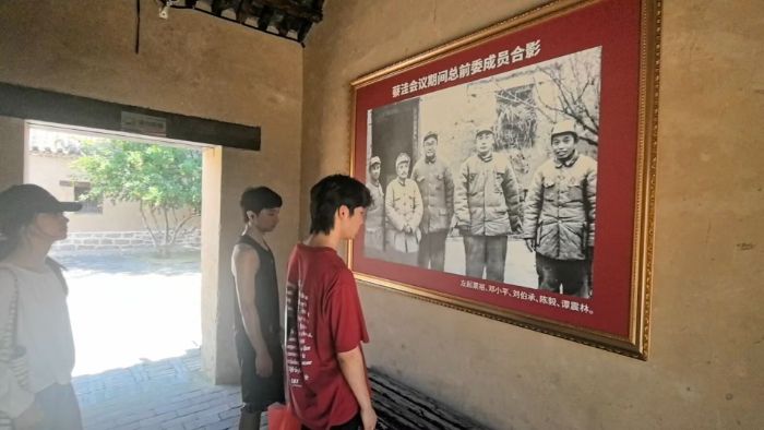 在總前委舊址展區(qū),實(shí)踐團(tuán)隊(duì)員們仿佛穿越時(shí)空,回到了1948年那個(gè)決定中國命運(yùn)的冬天。隊(duì)員們?cè)谡滟F的照片前觀望?;春?zhàn)役的勝利不僅是槍桿子的勝利,更是腦力較量的勝利。