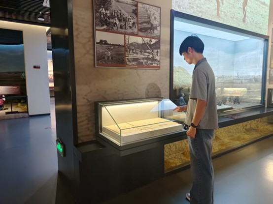 抵達(dá)小井莊,團(tuán)隊(duì)成員們的目光便被這片充滿故事的土地吸引。首站走進(jìn)小井莊紀(jì)念館,這里陳列的每一件物品,都像是打開歷史大門的鑰匙。泛黃的承包契約,邊角微微卷起,卻清晰記錄著當(dāng)年突破體制束縛的勇氣;陳舊的農(nóng)具,雖已布滿歲月痕跡,卻仿佛仍能看見先輩們握著它們在田間耕耘的身影;“包產(chǎn)到戶”討論場景的圖文資料,將時(shí)光拉回40余年前,串聯(lián)起一段波瀾壯闊的改革記憶。 “小井莊是農(nóng)村‘包產(chǎn)到戶’探索的前沿陣地,在那個(gè)大家都餓著肚子的年代,先輩們勇闖出路,為農(nóng)業(yè)生產(chǎn)破局。”隨著講解員的講述,成員們仿佛沉浸式觸摸到歷史的溫度。大家靜靜聆聽,從字里行間讀懂先輩們勇破體制束縛的擔(dān)當(dāng),明白正是這份擔(dān)當(dāng),為后來的農(nóng)業(yè)發(fā)展闖出全新路徑。