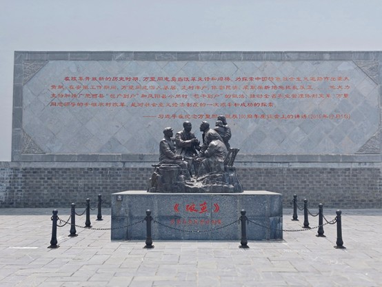 清晨的皖中平原綠意盎然,團(tuán)隊(duì)成員懷著對(duì)鄉(xiāng)土文化的熱忱與對(duì)改革故事的好奇,踏上前往小井莊的旅程。抵達(dá)目的地,“中國(guó)農(nóng)村包產(chǎn)到戶發(fā)源地之一”的石碑矗立眼前,無(wú)聲訴說著這里的特殊歷史地位。當(dāng)?shù)刂v解員以“要吃飯,包田到戶干”的時(shí)代吶喊為起點(diǎn),拉開了小井莊改革故事的序幕。