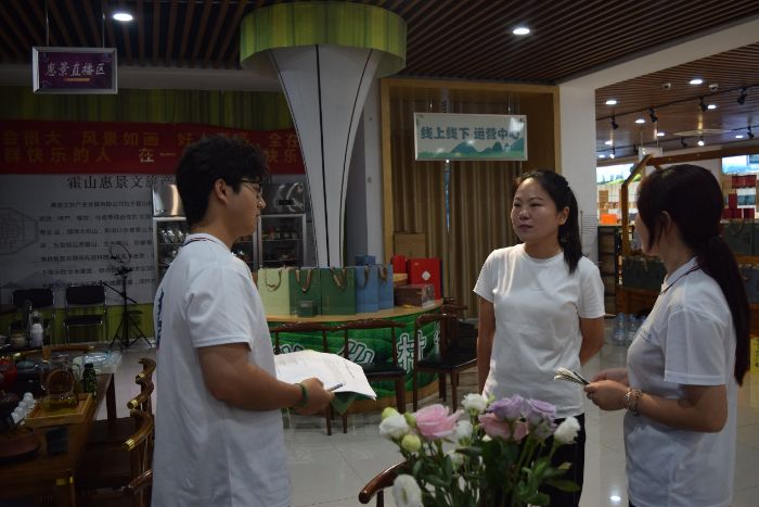 產(chǎn)業(yè)園內(nèi)鍵盤(pán)敲擊聲、直播帶貨聲此起彼伏。年輕主播們正熱情推介霍山黃芽茶、石斛等"寶藏"特產(chǎn),屏幕上實(shí)時(shí)滾動(dòng)的訂單展現(xiàn)電商強(qiáng)勁動(dòng)能。調(diào)研團(tuán)成員親身體驗(yàn)直播,巧妙將革命老區(qū)紅色故事融入黃茶推介:"品茶不僅享味蕾,更是對(duì)歷史的致敬",創(chuàng)新模式點(diǎn)燃觀眾熱情。